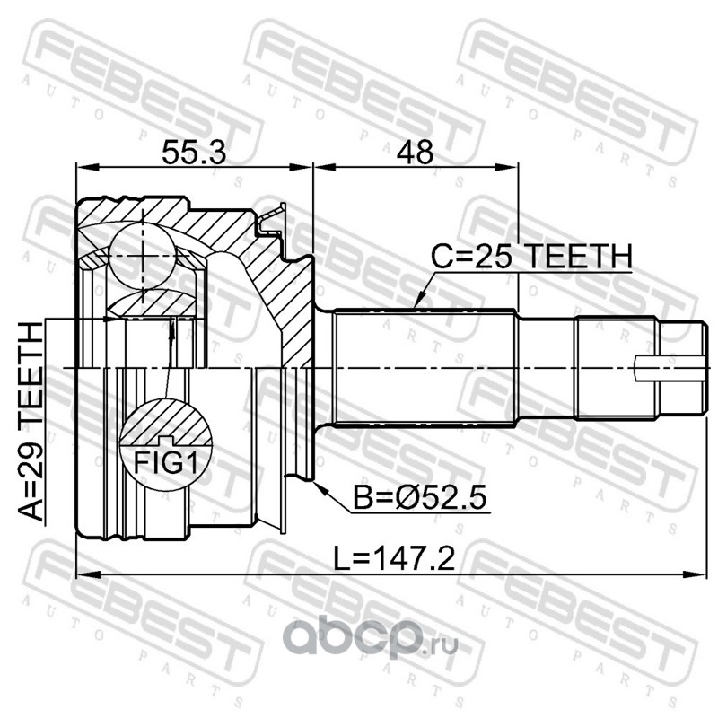 All World Cars - продажа Шрус наружный 29x52.5x25 артикул 1010T300MT по всей России и странах СНГ. Развитая сеть представительств с быстрой доставкой товаров бренда Febest и гарантией выгодной цены. Покупая в AWC товар Febest каталожный номер 1010T300MT вы бережете свое время, нервы и деньги.