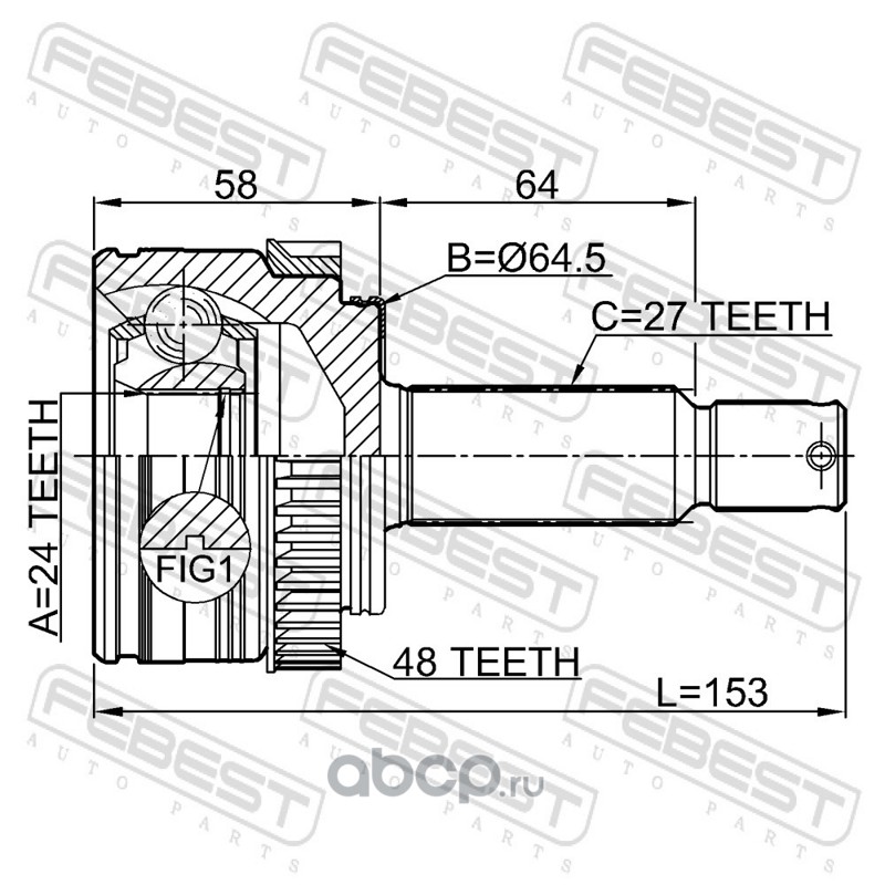 All World Cars - продажа Шрус наружный 24X64.5X27 артикул 1210IX35A48 по всей России и странах СНГ. Развитая сеть представительств с быстрой доставкой товаров бренда Febest и гарантией выгодной цены. Покупая в AWC товар Febest каталожный номер 1210IX35A48 вы бережете свое время, нервы и деньги.