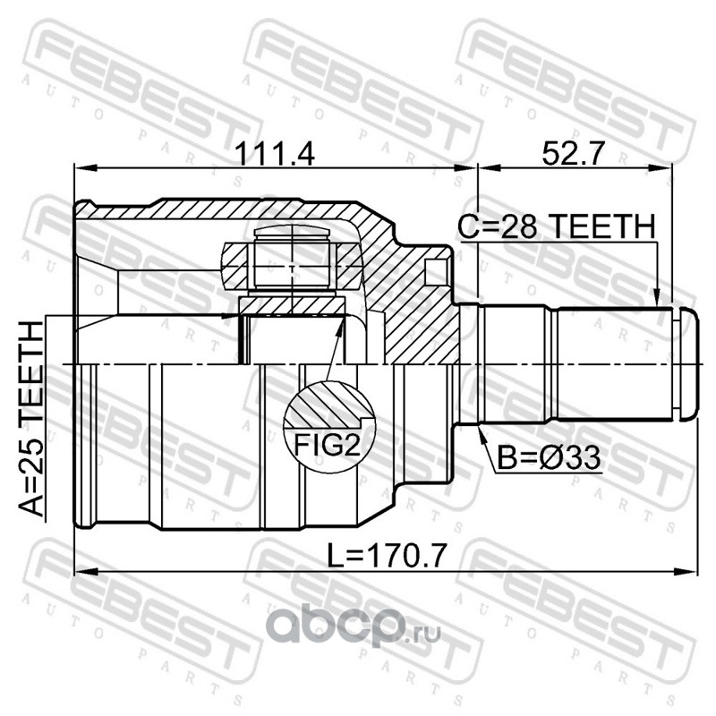 FENOX CV17206 ШРУС 28/25шл, внутренний