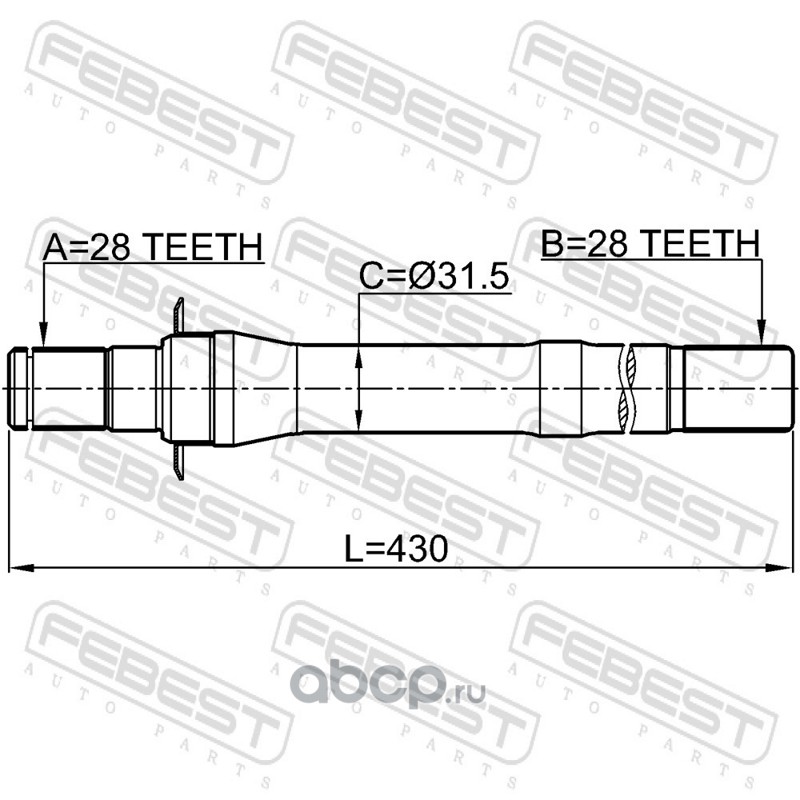 Полуось правая 28x430x28