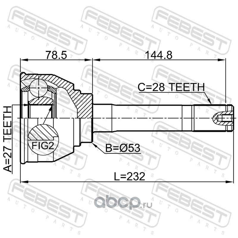 All World Cars - продажа Шрус наружный 27x53x28 артикул 1410KOR по всей России и странах СНГ. Развитая сеть представительств с быстрой доставкой товаров бренда Febest и гарантией выгодной цены. Покупая в AWC товар Febest каталожный номер 1410KOR вы бережете свое время, нервы и деньги.
