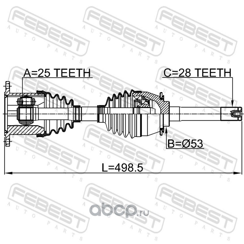 All World Cars - продажа Привод в сборе правый 498.5x28 артикул 1414MUS по всей России и странах СНГ. Развитая сеть представительств с быстрой доставкой товаров бренда Febest и гарантией выгодной цены. Покупая в AWC товар Febest каталожный номер 1414MUS вы бережете свое время, нервы и деньги.
