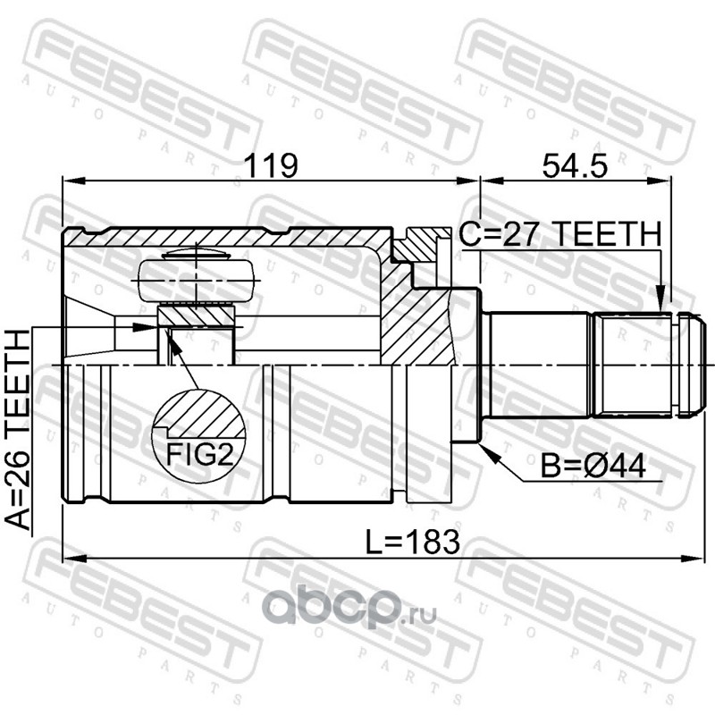 All World Cars - продажа Шрус внутренний левый 26x44x27 артикул 1911E53LH по всей России и странах СНГ. Развитая сеть представительств с быстрой доставкой товаров бренда Febest и гарантией выгодной цены. Покупая в AWC товар Febest каталожный номер 1911E53LH вы бережете свое время, нервы и деньги.