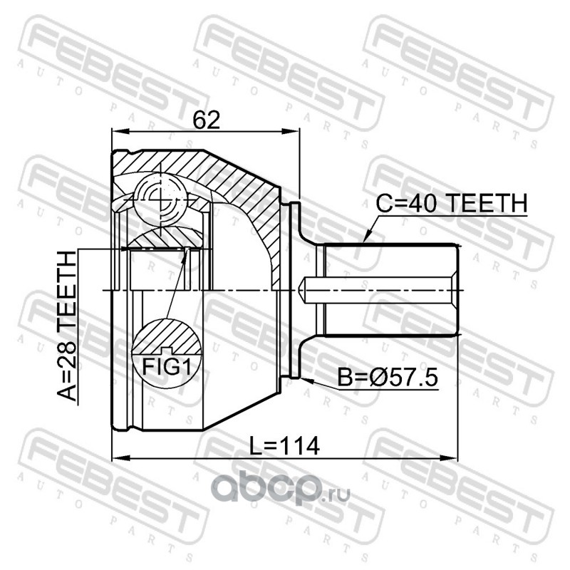 Шрус наружный 28x57.5x40