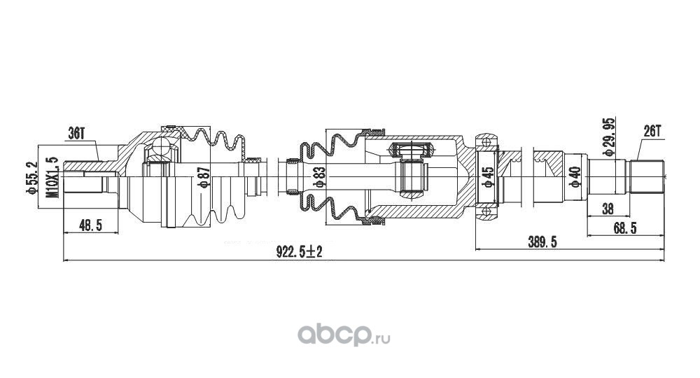BSG AUTO PARTS BSG30350009 ПРИВОДНЫЙ ВАЛ В СБОРЕ - ПРАВ. (ДИЗЕЛЬ-МЕХАН.)