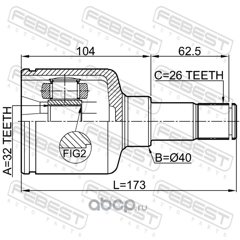 All World Cars - продажа Шрус внутренний левый 32x40x26 артикул 2111CB4LH по всей России и странах СНГ. Развитая сеть представительств с быстрой доставкой товаров бренда Febest и гарантией выгодной цены. Покупая в AWC товар Febest каталожный номер 2111CB4LH вы бережете свое время, нервы и деньги.