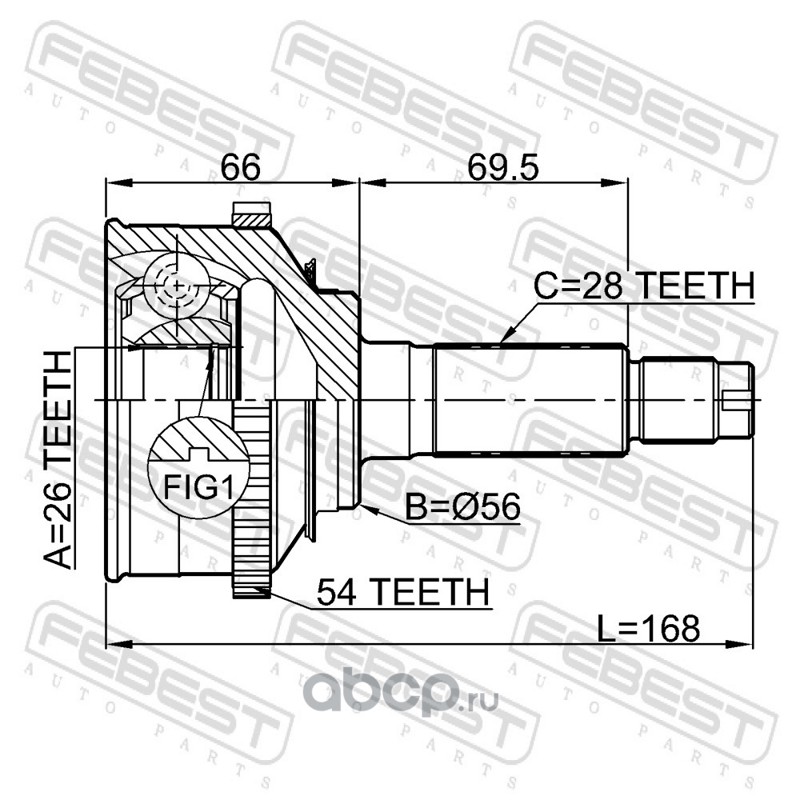 ШРУС НАРУЖНЫЙ 26x56x28 (KIA CARNIVAL/SEDONA (FL) 1998-2005) FEBEST