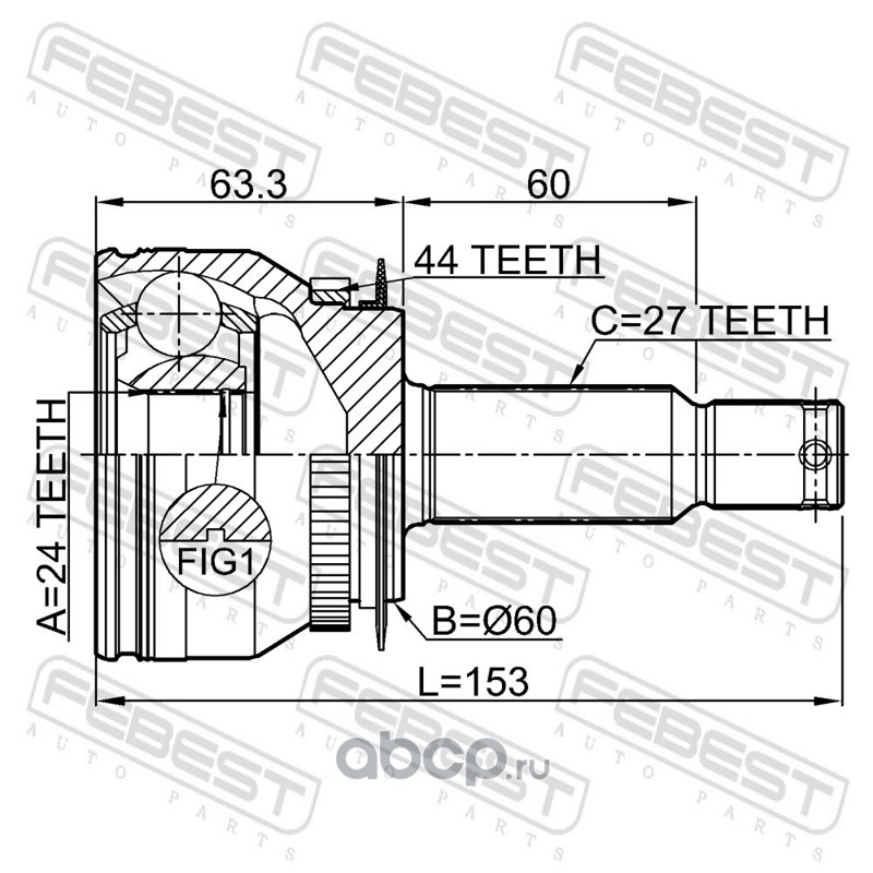 All World Cars - продажа Шрус наружный 24x60x27 артикул 2210CER15A44 по всей России и странах СНГ. Развитая сеть представительств с быстрой доставкой товаров бренда Febest и гарантией выгодной цены. Покупая в AWC товар Febest каталожный номер 2210CER15A44 вы бережете свое время, нервы и деньги.