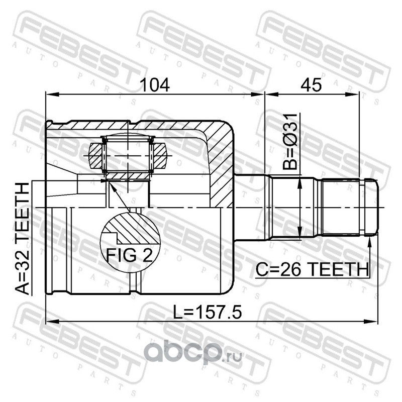 All World Cars - продажа ШРУС внутренний к/кт + крестовина артикул 2311030 по всей России и странах СНГ. Развитая сеть представительств с быстрой доставкой товаров бренда Febest и гарантией выгодной цены. Покупая в AWC товар Febest каталожный номер 2311030 вы бережете свое время, нервы и деньги.