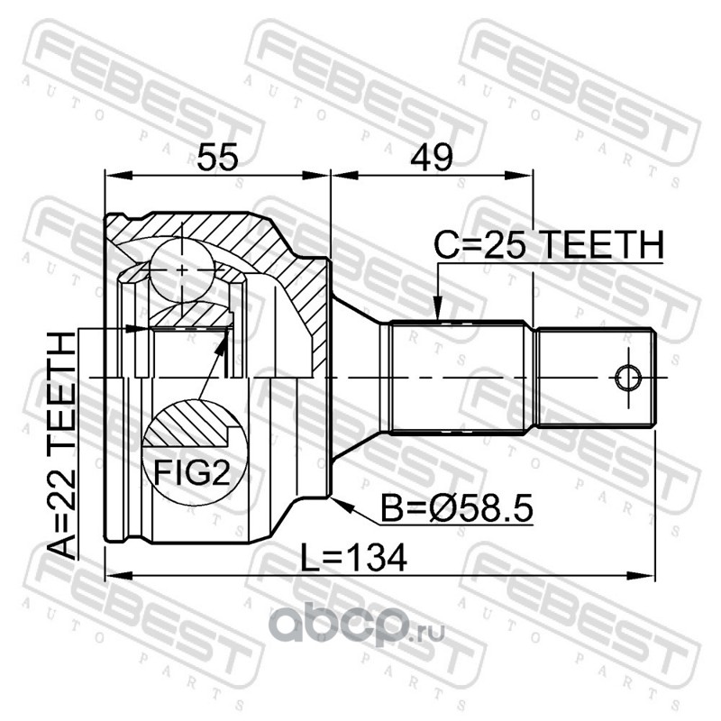 ШРУС НАРУЖНЫЙ 22x58.5x25 (PEUGEOT 307 2001-2008) FEBEST