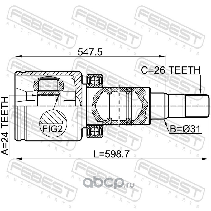 All World Cars - продажа Шрус внутренний правый 24x31x26 артикул 2711V70RH по всей России и странах СНГ. Развитая сеть представительств с быстрой доставкой товаров бренда Febest и гарантией выгодной цены. Покупая в AWC товар Febest каталожный номер 2711V70RH вы бережете свое время, нервы и деньги.