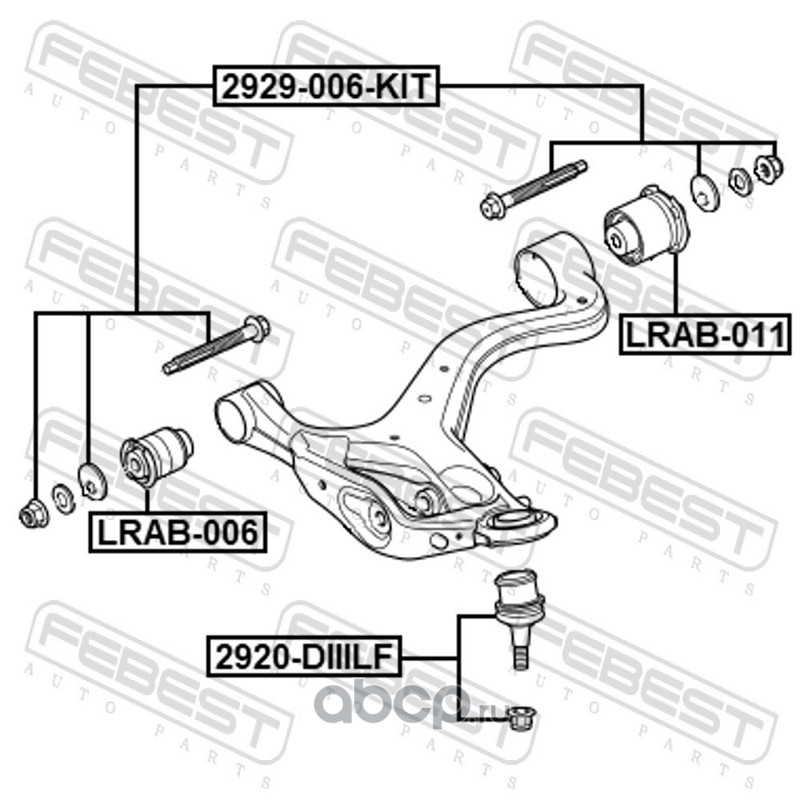 All World Cars - продажа Болт с эксцентриком ремкомплект артикул 2929006KIT по всей России и странах СНГ. Развитая сеть представительств с быстрой доставкой товаров бренда Febest и гарантией выгодной цены. Покупая в AWC товар Febest каталожный номер 2929006KIT вы бережете свое время, нервы и деньги.