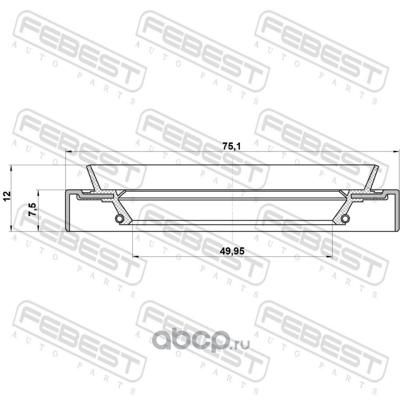 All World Cars - продажа Сальник ступичный задний 52X75X7.5X12 артикул 52757512 по всей России и странах СНГ. Развитая сеть представительств с быстрой доставкой товаров бренда Febest и гарантией выгодной цены. Покупая в AWC товар Febest каталожный номер 52757512 вы бережете свое время, нервы и деньги.