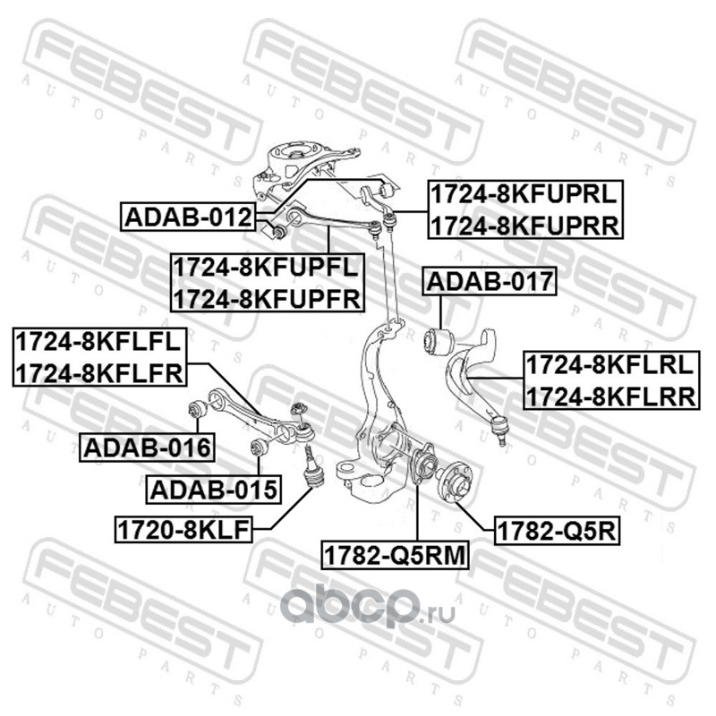 All World Cars - продажа Сайлентблок переднего нижнего рычага артикул ADAB015 по всей России и странах СНГ. Развитая сеть представительств с быстрой доставкой товаров бренда Febest и гарантией выгодной цены. Покупая в AWC товар Febest каталожный номер ADAB015 вы бережете свое время, нервы и деньги.