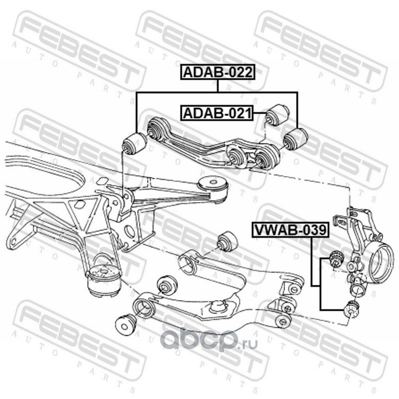 All World Cars - продажа Сайлентблок заднего поперечного рычага артикул ADAB021 по всей России и странах СНГ. Развитая сеть представительств с быстрой доставкой товаров бренда Febest и гарантией выгодной цены. Покупая в AWC товар Febest каталожный номер ADAB021 вы бережете свое время, нервы и деньги.