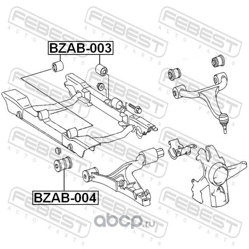 All World Cars - продажа Сайлентблок рычага MB ML W163 пер.подв. артикул BZAB004 по всей России и странах СНГ. Развитая сеть представительств с быстрой доставкой товаров бренда Febest и гарантией выгодной цены. Покупая в AWC товар Febest каталожный номер BZAB004 вы бережете свое время, нервы и деньги.