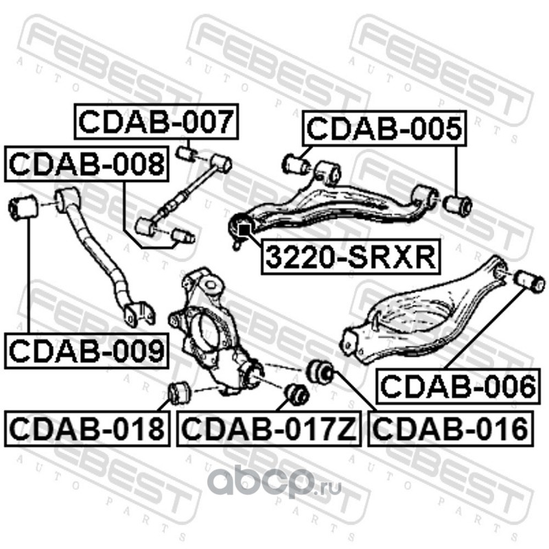 All World Cars - продажа Сайлентблок задней тяги артикул CDAB007 по всей России и странах СНГ. Развитая сеть представительств с быстрой доставкой товаров бренда Febest и гарантией выгодной цены. Покупая в AWC товар Febest каталожный номер CDAB007 вы бережете свое время, нервы и деньги.