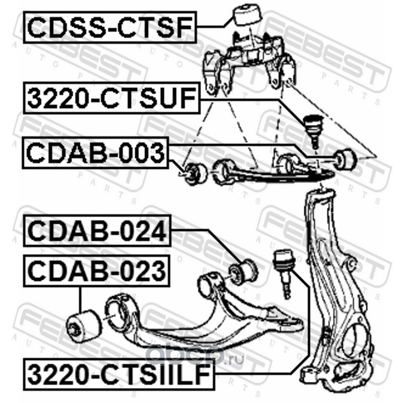 All World Cars - продажа Сайлентблок переднего нижнего рычага артикул CDAB023 по всей России и странах СНГ. Развитая сеть представительств с быстрой доставкой товаров бренда Febest и гарантией выгодной цены. Покупая в AWC товар Febest каталожный номер CDAB023 вы бережете свое время, нервы и деньги.