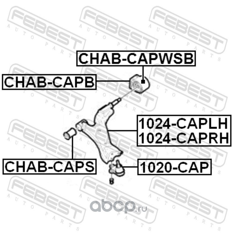 All World Cars - продажа Сайлентблок передний переднего рычага артикул CHABCAPS по всей России и странах СНГ. Развитая сеть представительств с быстрой доставкой товаров бренда Febest и гарантией выгодной цены. Покупая в AWC товар Febest каталожный номер CHABCAPS вы бережете свое время, нервы и деньги.