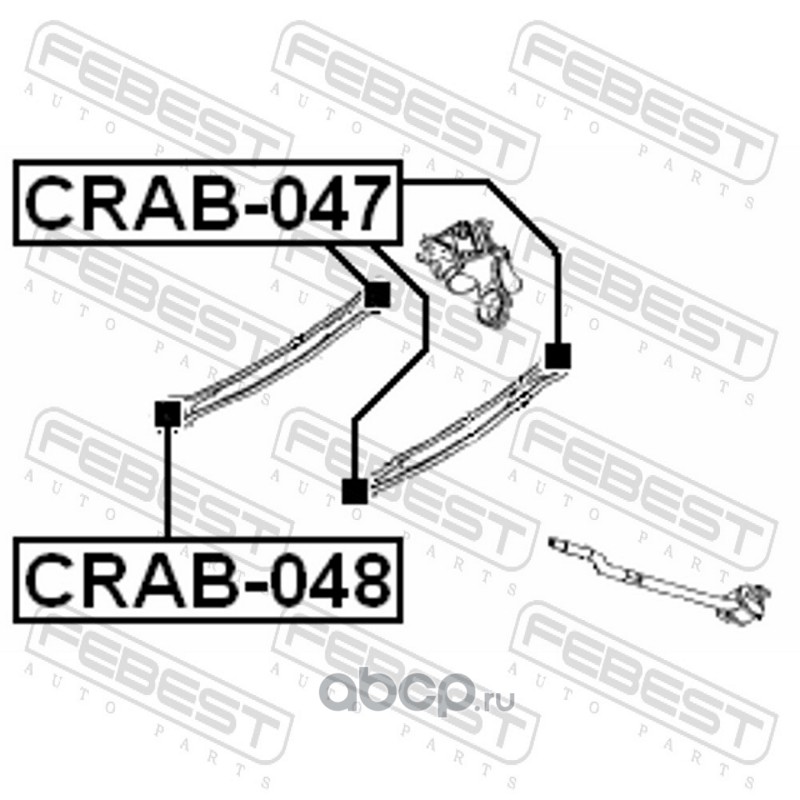 All World Cars - продажа Сайлентблок задней поперечной тяги артикул CRAB047 по всей России и странах СНГ. Развитая сеть представительств с быстрой доставкой товаров бренда Febest и гарантией выгодной цены. Покупая в AWC товар Febest каталожный номер CRAB047 вы бережете свое время, нервы и деньги.