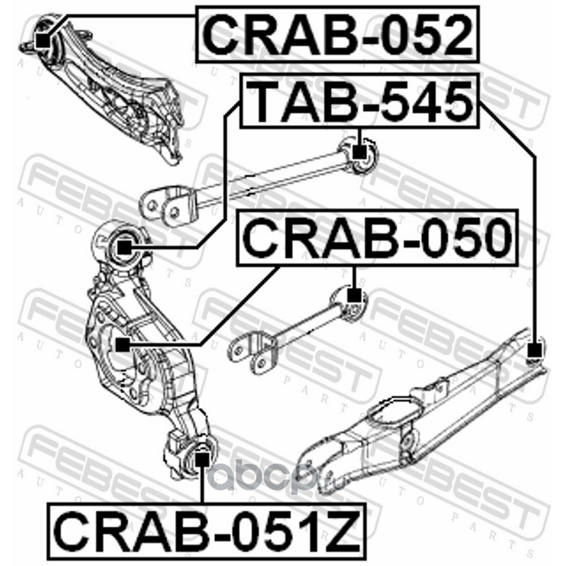 All World Cars - продажа Сайлентблок задней цапфы плавающий артикул CRAB051Z по всей России и странах СНГ. Развитая сеть представительств с быстрой доставкой товаров бренда Febest и гарантией выгодной цены. Покупая в AWC товар Febest каталожный номер CRAB051Z вы бережете свое время, нервы и деньги.