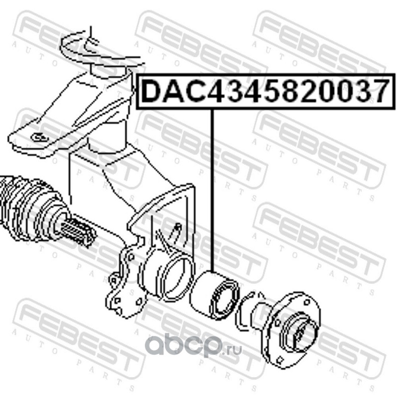 All World Cars - продажа Подшипник пер.ступ. артикул DAC4345820037 по всей России и странах СНГ. Развитая сеть представительств с быстрой доставкой товаров бренда Febest и гарантией выгодной цены. Покупая в AWC товар Febest каталожный номер DAC4345820037 вы бережете свое время, нервы и деньги.