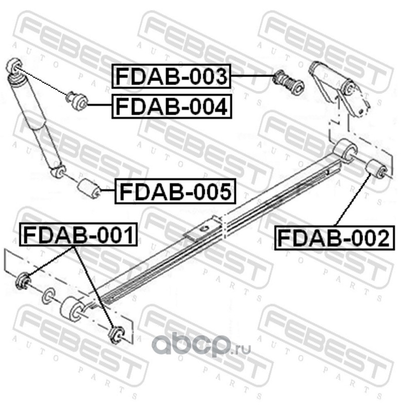 All World Cars - продажа Сайлентблок задней рессоры артикул FDAB001 по всей России и странах СНГ. Развитая сеть представительств с быстрой доставкой товаров бренда Febest и гарантией выгодной цены. Покупая в AWC товар Febest каталожный номер FDAB001 вы бережете свое время, нервы и деньги.