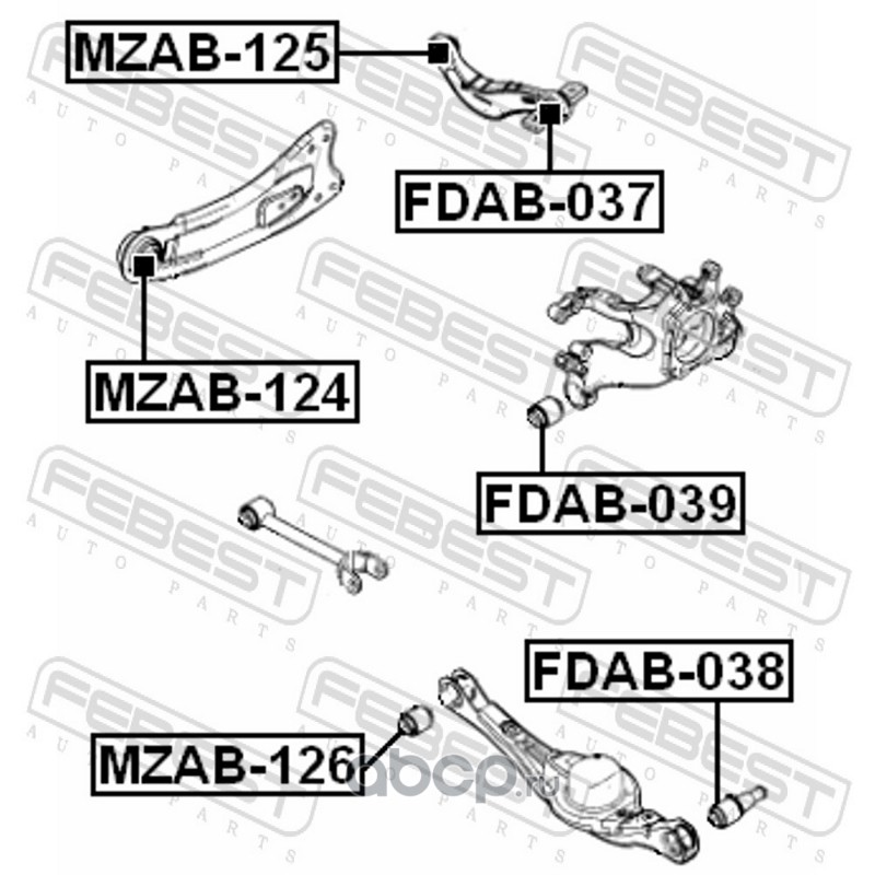 All World Cars - продажа Сайлентблок заднего рычага артикул FDAB038 по всей России и странах СНГ. Развитая сеть представительств с быстрой доставкой товаров бренда Febest и гарантией выгодной цены. Покупая в AWC товар Febest каталожный номер FDAB038 вы бережете свое время, нервы и деньги.