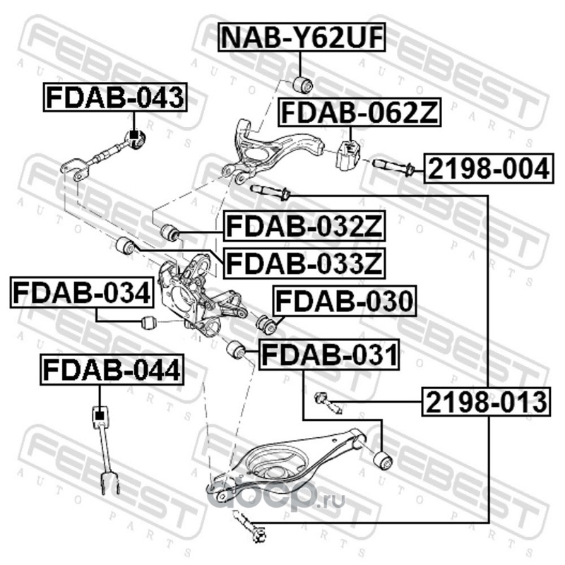 All World Cars - продажа Сайлентблок задней поперечной тяги артикул FDAB043 по всей России и странах СНГ. Развитая сеть представительств с быстрой доставкой товаров бренда Febest и гарантией выгодной цены. Покупая в AWC товар Febest каталожный номер FDAB043 вы бережете свое время, нервы и деньги.