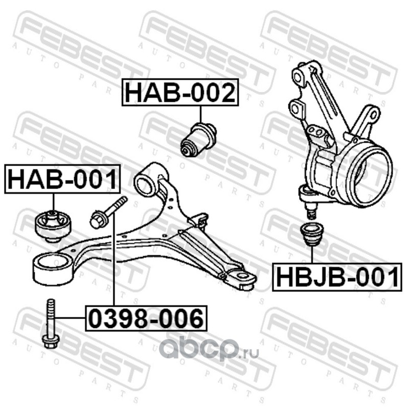 All World Cars - продажа Сайлентблок рычага подвески артикул HAB002 по всей России и странах СНГ. Развитая сеть представительств с быстрой доставкой товаров бренда Febest и гарантией выгодной цены. Покупая в AWC товар Febest каталожный номер HAB002 вы бережете свое время, нервы и деньги.