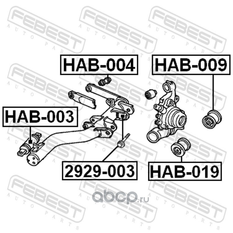 All World Cars - продажа Сайлентблок заднего рычага артикул HAB003 по всей России и странах СНГ. Развитая сеть представительств с быстрой доставкой товаров бренда Febest и гарантией выгодной цены. Покупая в AWC товар Febest каталожный номер HAB003 вы бережете свое время, нервы и деньги.