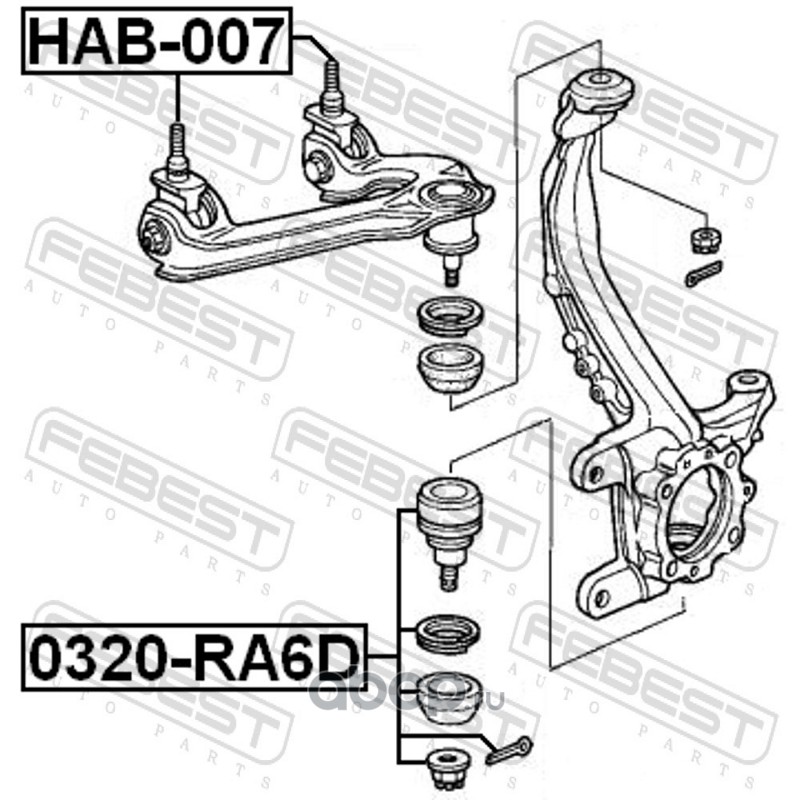 All World Cars - продажа Сайлентблок верхнего рычага FEBEST HAB-007 артикул HAB007 по всей России и странах СНГ. Развитая сеть представительств с быстрой доставкой товаров бренда Febest и гарантией выгодной цены. Покупая в AWC товар Febest каталожный номер HAB007 вы бережете свое время, нервы и деньги.