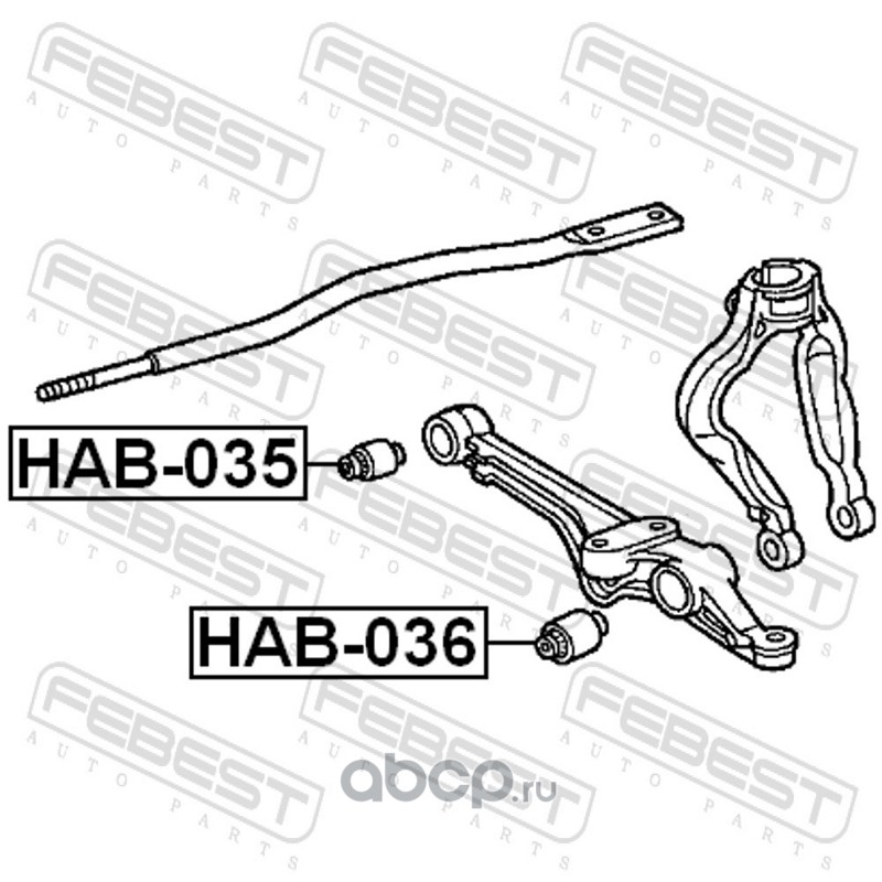 All World Cars - продажа Сайлентблок передний нижнего рычага артикул HAB035 по всей России и странах СНГ. Развитая сеть представительств с быстрой доставкой товаров бренда Febest и гарантией выгодной цены. Покупая в AWC товар Febest каталожный номер HAB035 вы бережете свое время, нервы и деньги.