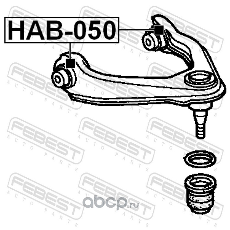 All World Cars - продажа Сайлентблок верхний переднего рычага артикул HAB050 по всей России и странах СНГ. Развитая сеть представительств с быстрой доставкой товаров бренда Febest и гарантией выгодной цены. Покупая в AWC товар Febest каталожный номер HAB050 вы бережете свое время, нервы и деньги.