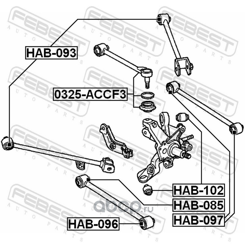All World Cars - продажа Сайлентблок HAB-085 артикул HAB085 по всей России и странах СНГ. Развитая сеть представительств с быстрой доставкой товаров бренда Febest и гарантией выгодной цены. Покупая в AWC товар Febest каталожный номер HAB085 вы бережете свое время, нервы и деньги.