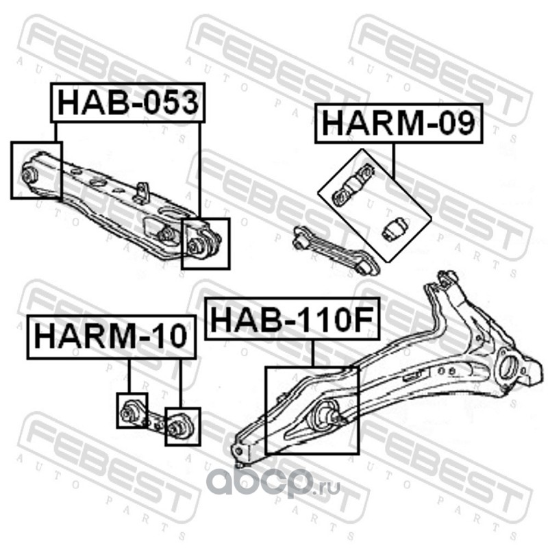 All World Cars - продажа Сайлентблок рычага продольного заднего артикул HAB110F по всей России и странах СНГ. Развитая сеть представительств с быстрой доставкой товаров бренда Febest и гарантией выгодной цены. Покупая в AWC товар Febest каталожный номер HAB110F вы бережете свое время, нервы и деньги.