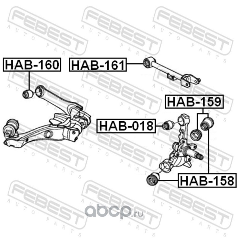 All World Cars - продажа Сайлентблок поворотного кулака артикул HAB158 по всей России и странах СНГ. Развитая сеть представительств с быстрой доставкой товаров бренда Febest и гарантией выгодной цены. Покупая в AWC товар Febest каталожный номер HAB158 вы бережете свое время, нервы и деньги.