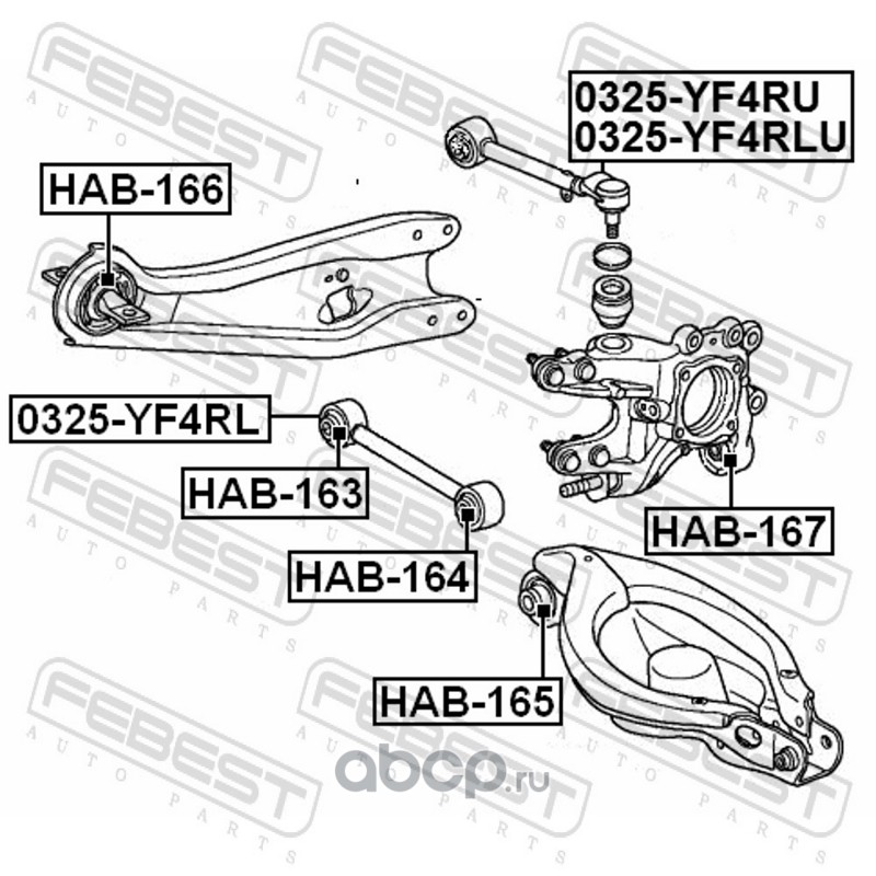 All World Cars - продажа сайленблок задней тяги артикул HAB163 по всей России и странах СНГ. Развитая сеть представительств с быстрой доставкой товаров бренда Febest и гарантией выгодной цены. Покупая в AWC товар Febest каталожный номер HAB163 вы бережете свое время, нервы и деньги.