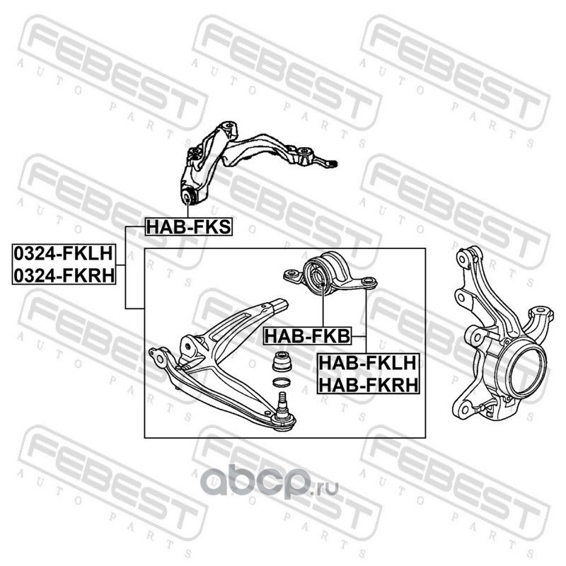All World Cars - продажа Сайлентблок передний переднего рычага артикул HABFKS по всей России и странах СНГ. Развитая сеть представительств с быстрой доставкой товаров бренда Febest и гарантией выгодной цены. Покупая в AWC товар Febest каталожный номер HABFKS вы бережете свое время, нервы и деньги.
