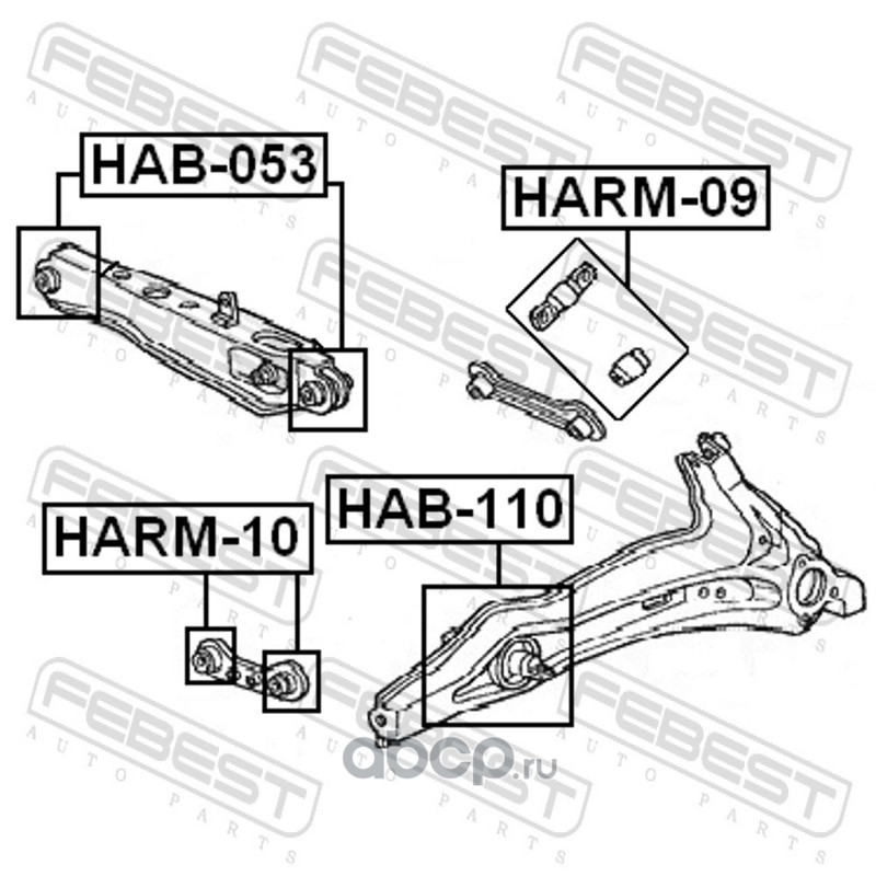 All World Cars - продажа Ремкомплект сайлентблоков тяги артикул HARM10 по всей России и странах СНГ. Развитая сеть представительств с быстрой доставкой товаров бренда Febest и гарантией выгодной цены. Покупая в AWC товар Febest каталожный номер HARM10 вы бережете свое время, нервы и деньги.
