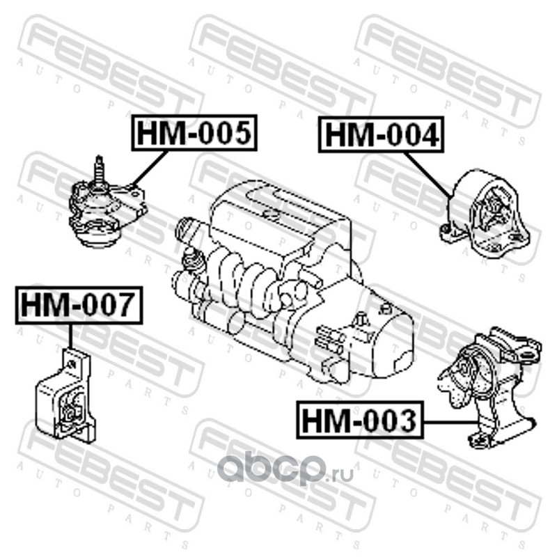 All World Cars - продажа Подушка двигателя правая артикул HM005 по всей России и странах СНГ. Развитая сеть представительств с быстрой доставкой товаров бренда Febest и гарантией выгодной цены. Покупая в AWC товар Febest каталожный номер HM005 вы бережете свое время, нервы и деньги.
