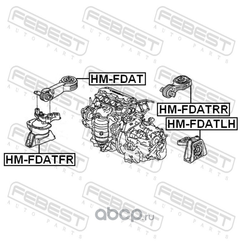 All World Cars - продажа Подушка ДВС передняя AT артикул HMFDAT по всей России и странах СНГ. Развитая сеть представительств с быстрой доставкой товаров бренда Febest и гарантией выгодной цены. Покупая в AWC товар Febest каталожный номер HMFDAT вы бережете свое время, нервы и деньги.