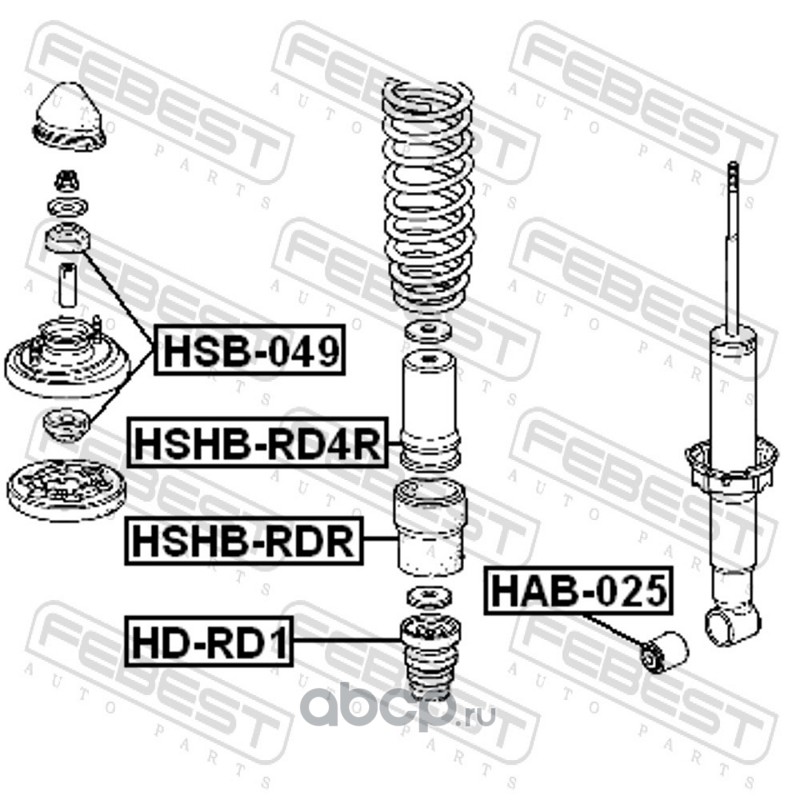 All World Cars - продажа Втулка амортизатора HONDA CIVIC/CIVIC FERIO 91-01 зад. артикул HSB049 по всей России и странах СНГ. Развитая сеть представительств с быстрой доставкой товаров бренда Febest и гарантией выгодной цены. Покупая в AWC товар Febest каталожный номер HSB049 вы бережете свое время, нервы и деньги.