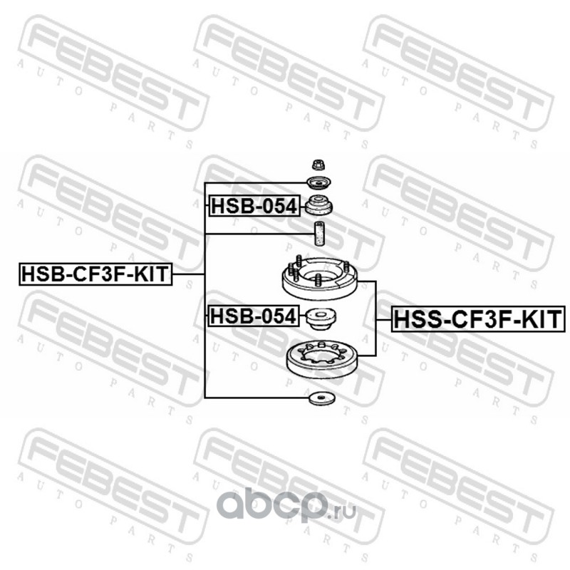 All World Cars - продажа Втулка переднего амортизатора (комплект) артикул HSBCF3FKIT по всей России и странах СНГ. Развитая сеть представительств с быстрой доставкой товаров бренда Febest и гарантией выгодной цены. Покупая в AWC товар Febest каталожный номер HSBCF3FKIT вы бережете свое время, нервы и деньги.