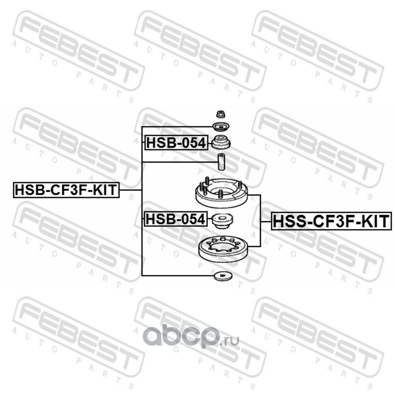 All World Cars - продажа Опора амортизационной стойки артикул HSSCF3FKIT по всей России и странах СНГ. Развитая сеть представительств с быстрой доставкой товаров бренда Febest и гарантией выгодной цены. Покупая в AWC товар Febest каталожный номер HSSCF3FKIT вы бережете свое время, нервы и деньги.