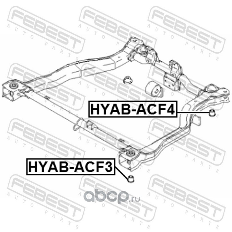 All World Cars - продажа Сайлентблок подрамника артикул HYABACF4 по всей России и странах СНГ. Развитая сеть представительств с быстрой доставкой товаров бренда Febest и гарантией выгодной цены. Покупая в AWC товар Febest каталожный номер HYABACF4 вы бережете свое время, нервы и деньги.