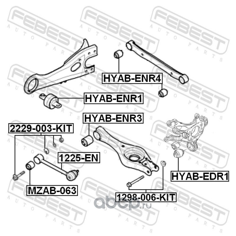 All World Cars - продажа Сайлентблок задней поперечной тяги артикул HYABENR3 по всей России и странах СНГ. Развитая сеть представительств с быстрой доставкой товаров бренда Febest и гарантией выгодной цены. Покупая в AWC товар Febest каталожный номер HYABENR3 вы бережете свое время, нервы и деньги.