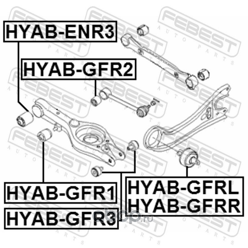 All World Cars - продажа Сайлентблок рычага подвески артикул HYABGFRL по всей России и странах СНГ. Развитая сеть представительств с быстрой доставкой товаров бренда Febest и гарантией выгодной цены. Покупая в AWC товар Febest каталожный номер HYABGFRL вы бережете свое время, нервы и деньги.