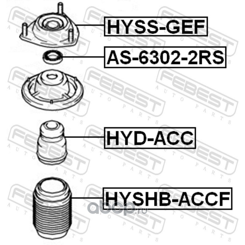 All World Cars - продажа Опора переднего амортизатора артикул HYSSGEF по всей России и странах СНГ. Развитая сеть представительств с быстрой доставкой товаров бренда Febest и гарантией выгодной цены. Покупая в AWC товар Febest каталожный номер HYSSGEF вы бережете свое время, нервы и деньги.