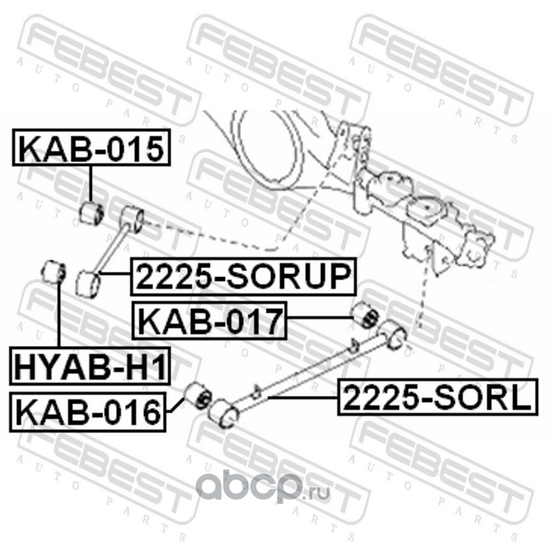 All World Cars - продажа Сайлентблок заднего продольного рычага артикул KAB016 по всей России и странах СНГ. Развитая сеть представительств с быстрой доставкой товаров бренда Febest и гарантией выгодной цены. Покупая в AWC товар Febest каталожный номер KAB016 вы бережете свое время, нервы и деньги.